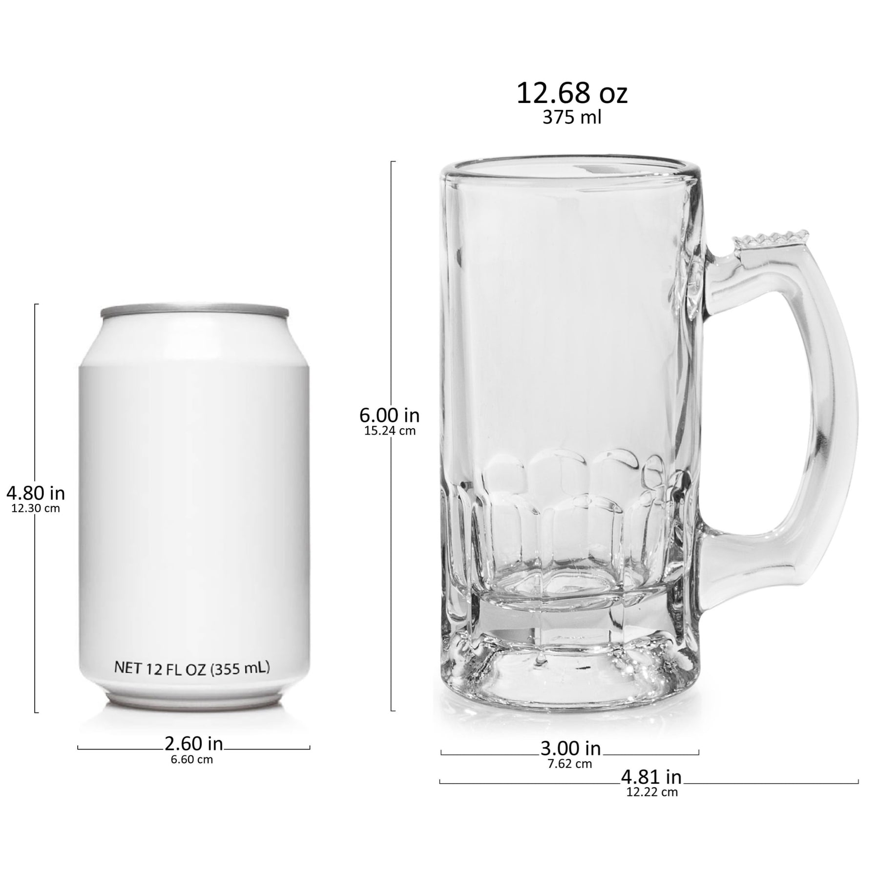 - Includes 4, 12.68-ounce beer mugs (4.81-inch diameter by 6-inches tall)